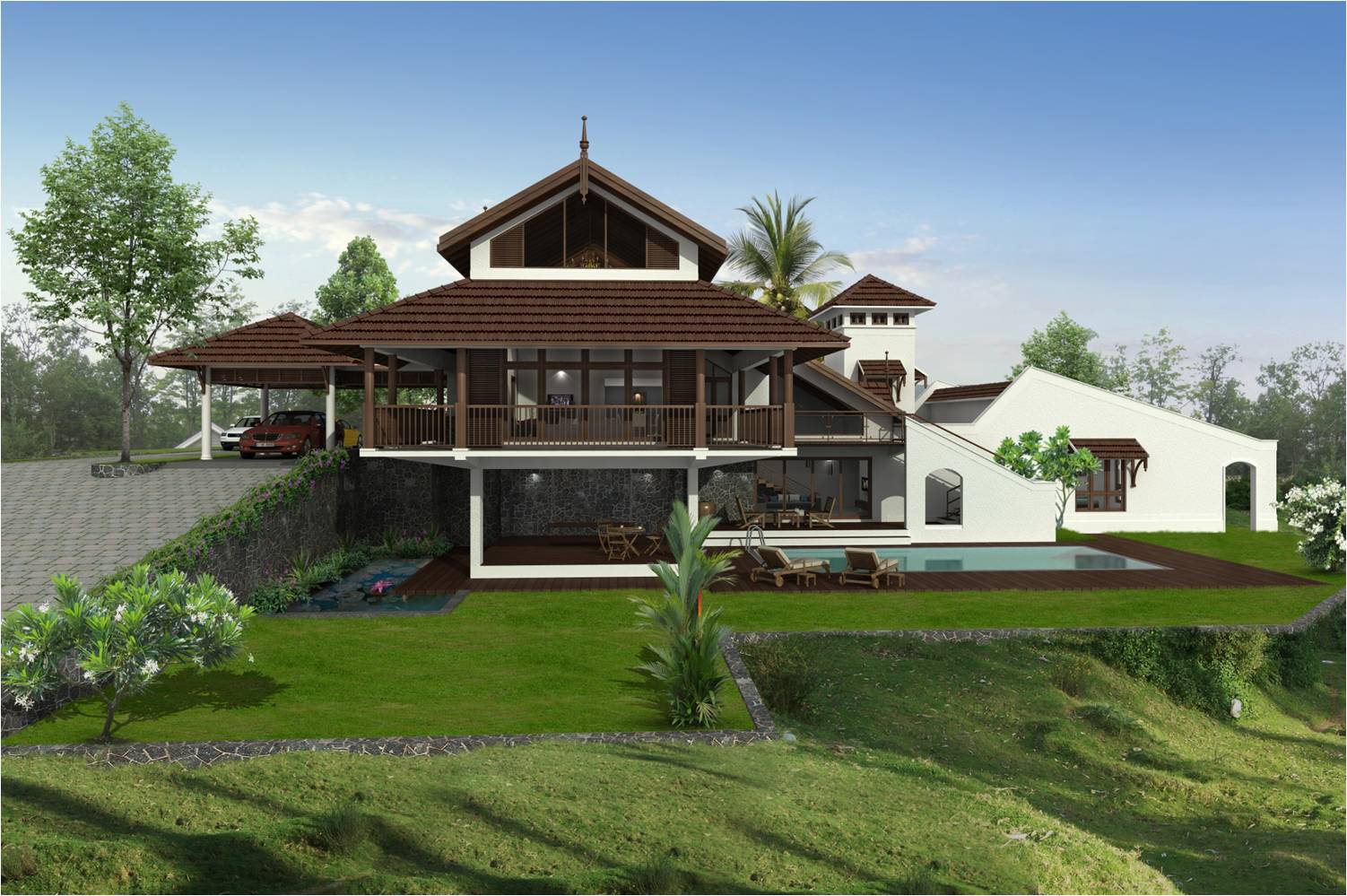 Project Unbuilt .Proposal for a high end luxury villa along a sloping site.